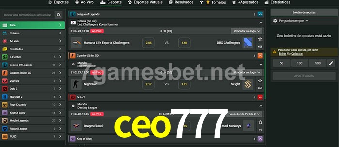 O ceo777 oferece uma grande seleção de opções de apostas em e-sports com probabilidades competitivas